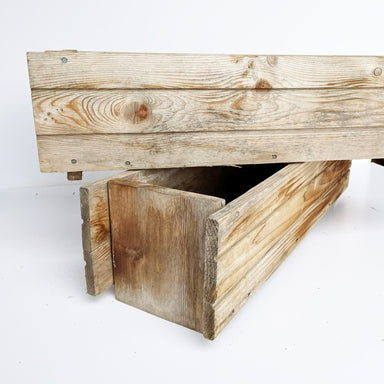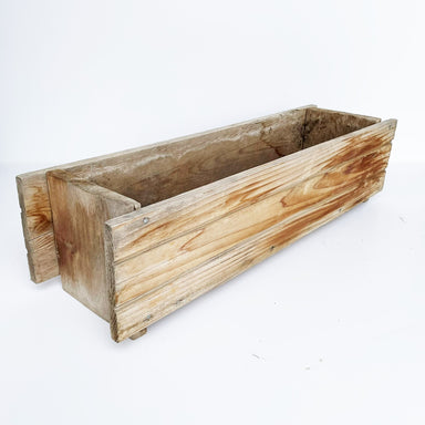 Weathered, wooden planters. Perfect for everyday tablescapes or weddings. No lining - use as cachepot 24" long6" tall Fits a 6" pot