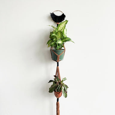 Handmade macramé plant hanger from 'Twisted Sisters', a locally-owned craft business! High quality hemp Fits 6" pot Length: 40"