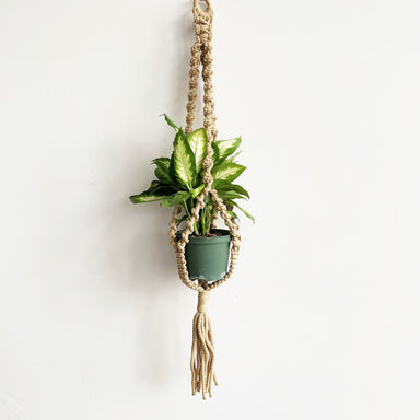 Handmade macramé plant hanger from 'Twisted Sisters', a locally-owned craft business! High quality hemp Fits 6" pot Length: 38"