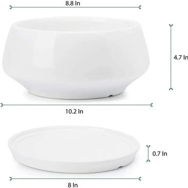 Quality porcelain planter White glaze Attached ceramic saucer 6" H x 6" W x 6" L