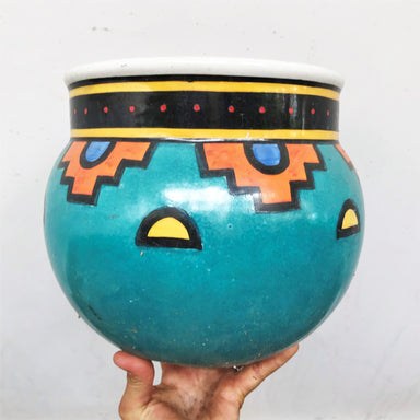 One of a kind! High quality glazed ceramic Drainage hole Size: 8" W (opening), 10" W (base) x 10" H