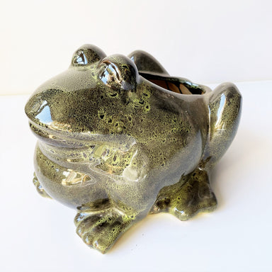 Ribbit ribbit! Heavy ceramic Size: 9" L x 7" W x 6" H Drainage hole