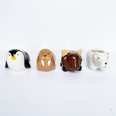 Mini arctic animal porcelain planters WalrusPolar BearMoosePenguin 3" H x 2.5" W x 3" LFits a 2" plant