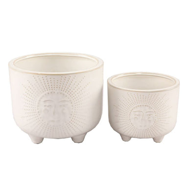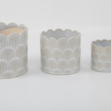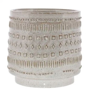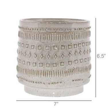 Undulating, embossed patterns on this ceramic pot brings hints of South America to your space. Creamy white glaze adds just the right amount of she...