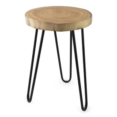 Paulownia woodThree metal hairpin legs Size: 13.5" L x 13.5" W x 21" HWeight: 4.94 lbs Made in Germany
